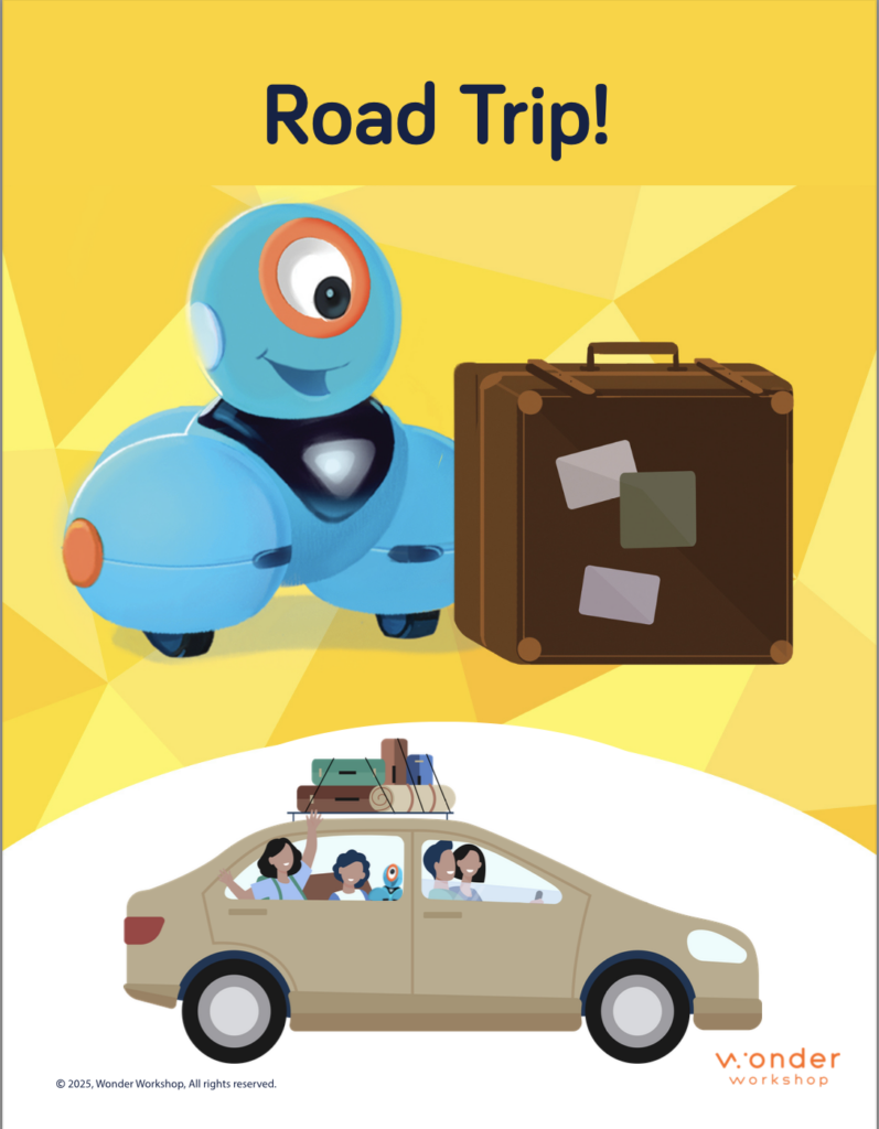Teachers and families, meet Dash’s next adventure: the Road Trip packet! This collection of 3 challenge cards, takes kids on a road trip so they can practice coding, computational thinking and creativity with Dash.