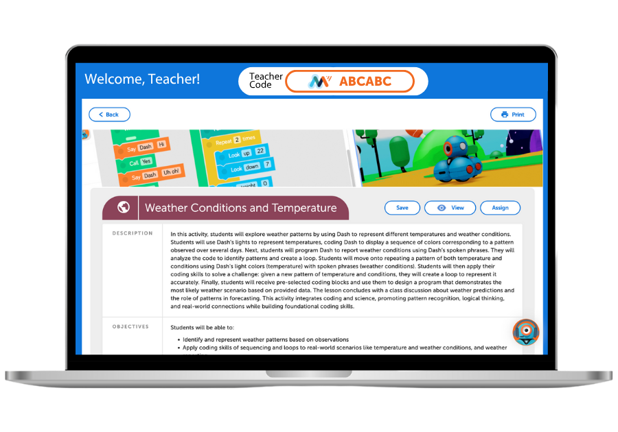 Terwijl leerlingen Dash door elke activiteit helpen, bouwen en verfijnen ze hun codeervaardigheden. Van eenvoudige reeksen voor jongere leerlingen tot meer geavanceerde voorwaardelijke verklaringen voor oudere kinderen, de activiteiten zijn zorgvuldig afgestemd op elk niveau. Door coderingsuitdagingen te koppelen aan wetenschappelijke concepten zien leerlingen al snel dat computational thinking een geweldige manier is om de wereld om hen heen te begrijpen en authentieke problemen op te lossen.