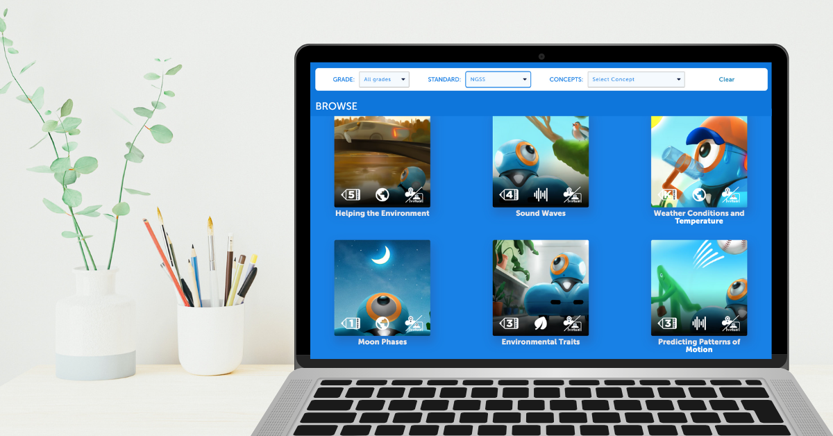 Ben je er klaar voor om je leerlingen mee te nemen op een bijzondere leerreis? We zijn verheugd om onze gloednieuwe NGSS-georiënteerde wetenschapsactiviteiten aan te kondigen! Deze 20 interactieve K-5 activiteiten combineren aard- en ruimtevaart, biowetenschappen en natuurwetenschappen met fundamentele codeervaardigheden zoals sequencing, loops, events en conditionals, zodat kinderen kunnen leren door te doen, te ontdekken en vooral plezier te hebben.