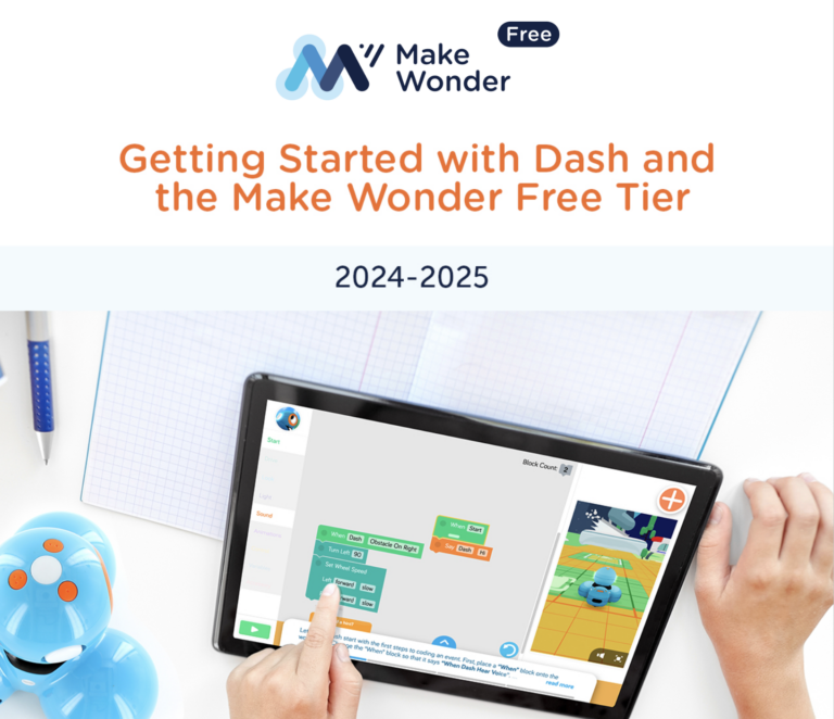 This introduction to Dash and Make Wonder provides a comprehensive look at Dash, the Blockly app and the puzzle tracking and other features available to you in the Free Tier of Make Wonder. Bookmark this guide to refer to it again and again. Since it’s digital, it’ll always be up to date and it also includes video tutorials!