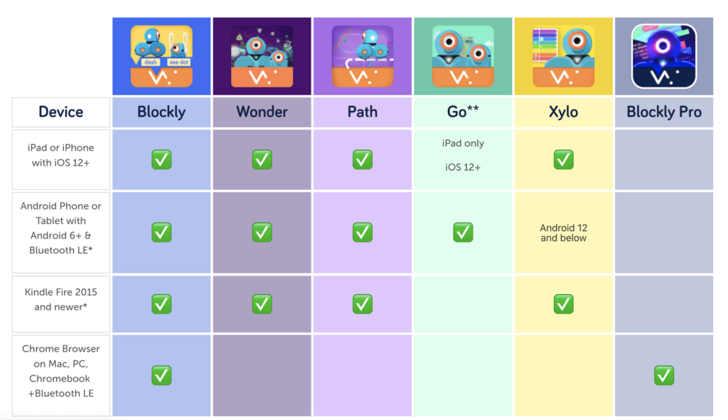 Below are the devices and operating systems that are compatible with our apps and robots. For best results, make sure that the latest firmware version is installed on each robot.